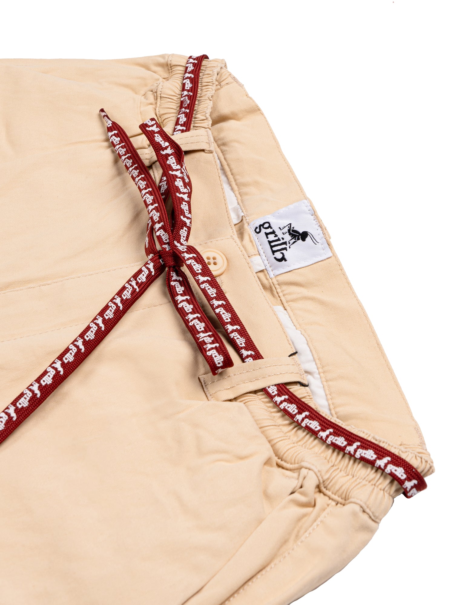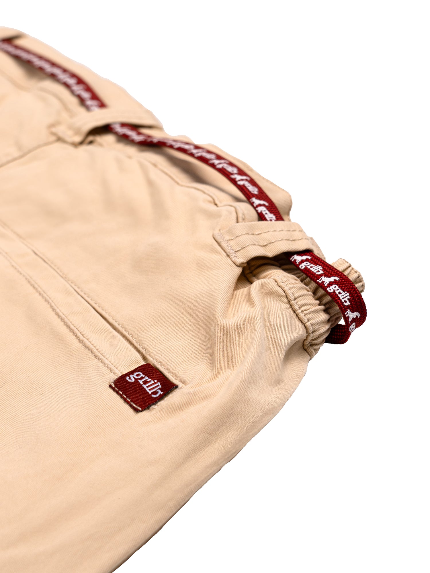 Heritage trousers with a relaxed, straight fit, deep pockets, and elasticated sides for added comfort. Available in two autumnal colors and a wide range of sizes. Includes an original Grillo drawstring belt.